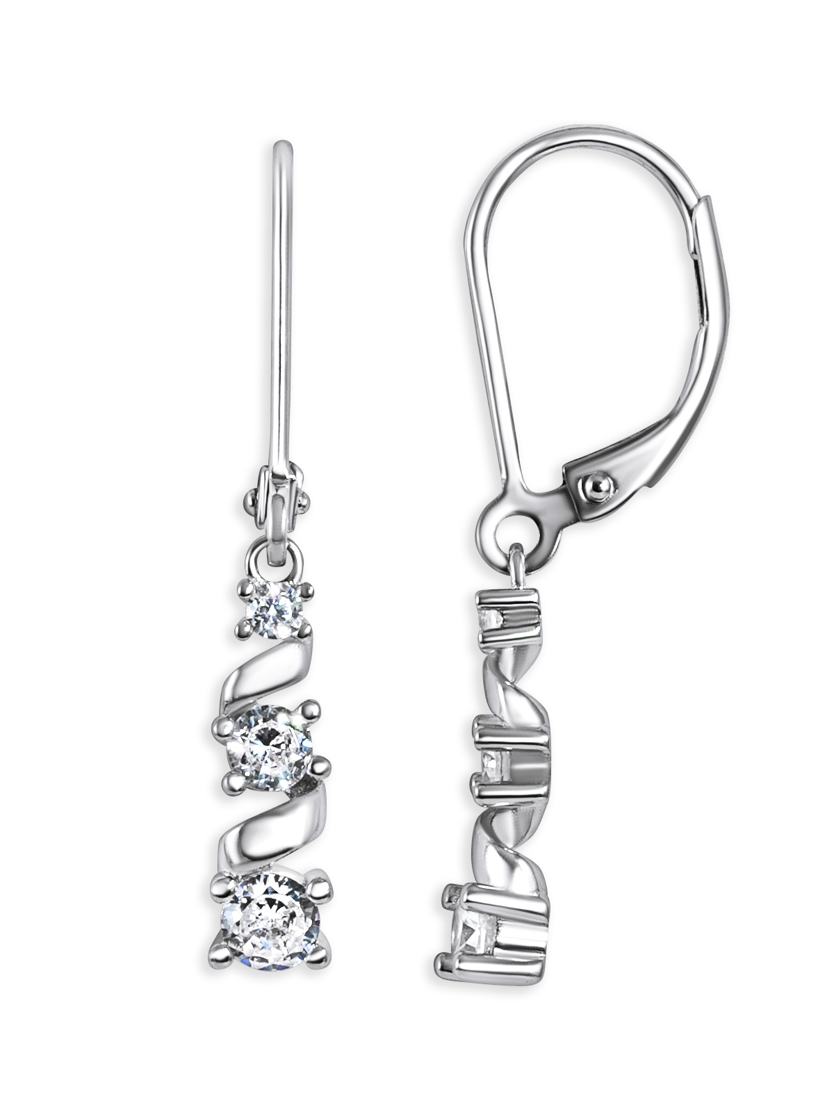 Nádherné visací náušnice ve tvaru stočené stužky se zirkony.