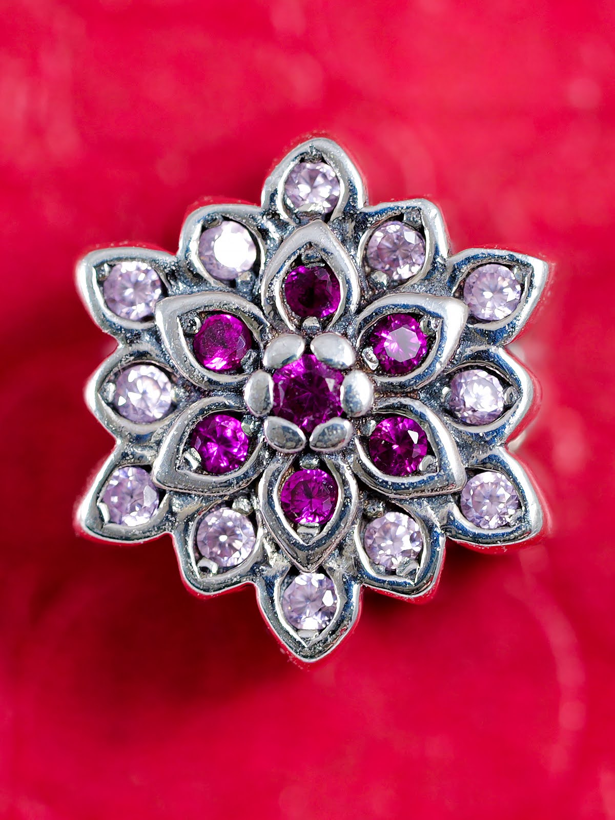Přívěsek na náramek s příběhem ve tvaru růžové jiřiny. Nádherně zpracovaný kousek, který musíte mít..