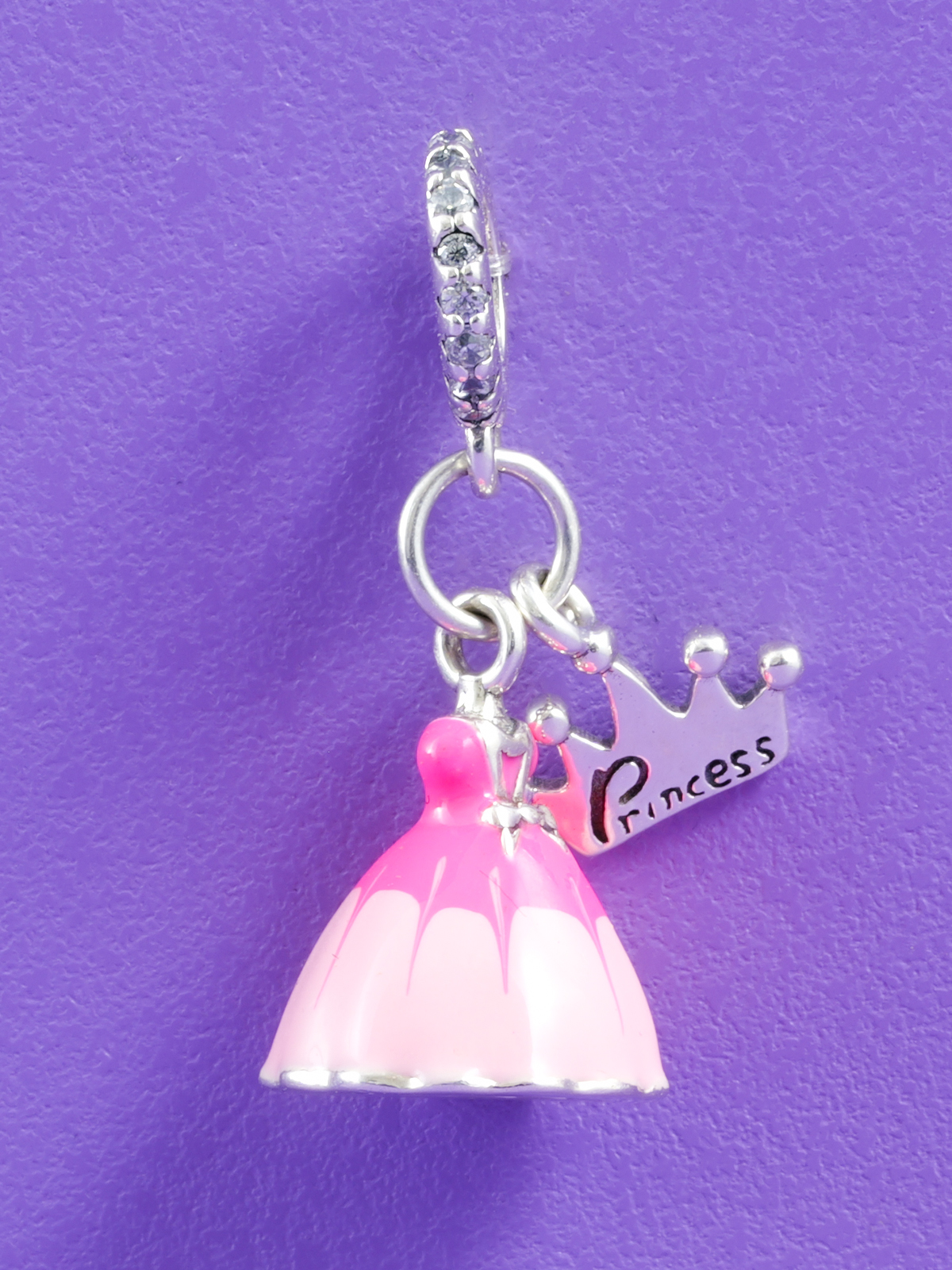 Přívěsek na náramek s příběhem ve tvaru nádherných růžových šatů pro princeznu. Staňte se na chvílí princeznou.