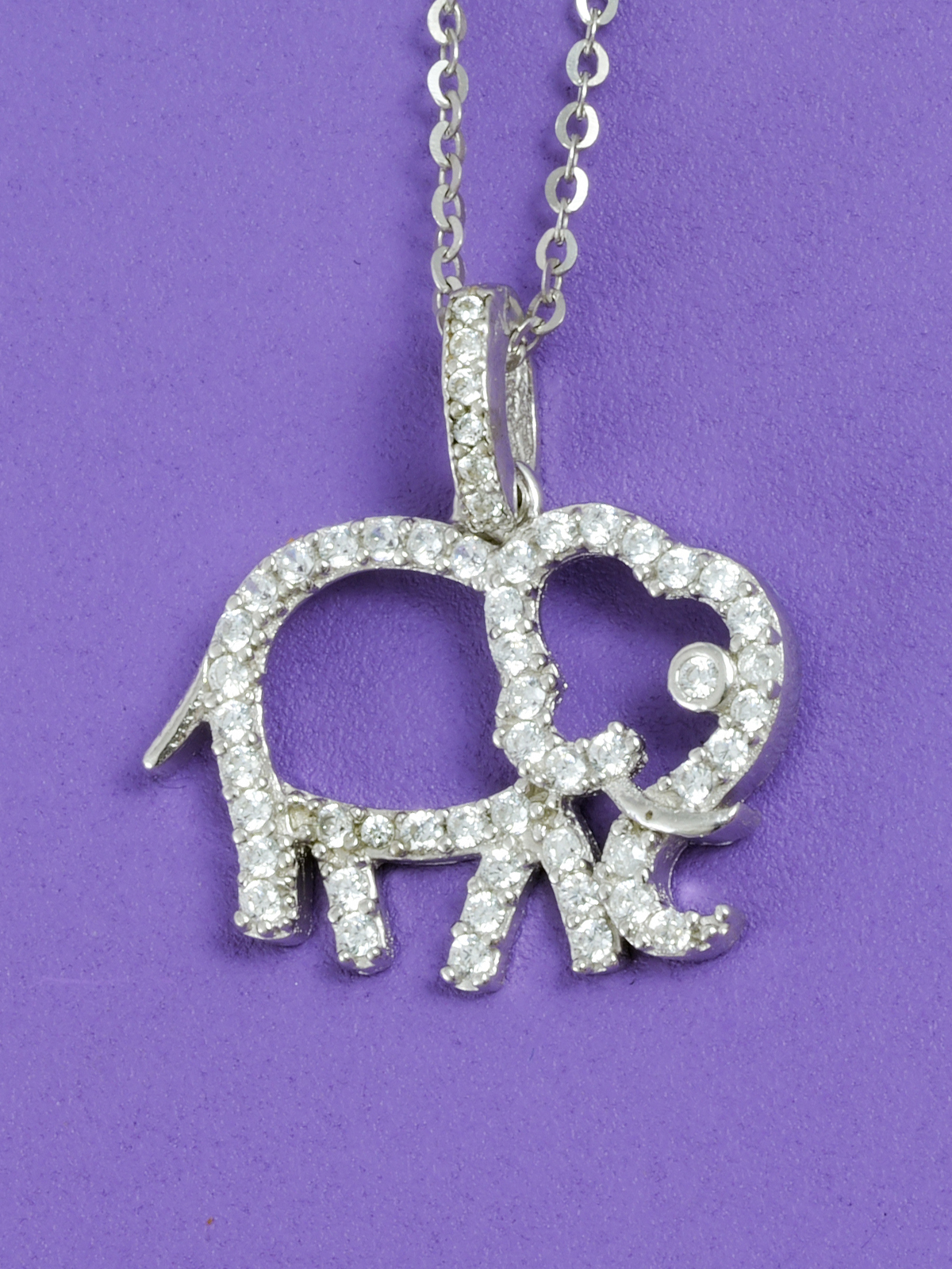 Přívěsek ve tvaru slona, který je kolem dokola osázen třpytivými zirkony.